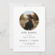 Este convite para chás de fraldas apresenta um sans serif font duo, um moderno design minimalista e uma foto personalizada redonda.