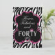 © Designs socialitas. Celebre a sua aniversário de 40 anos com este elegante padrão de zebra, limite do shimmer rosa-chic e beleja 40 convites de texto. Um design personalizado por Designs socialitas.
