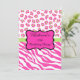 Comemore um aniversário de 50 anos com uma festa, almoço ou outro evento com este convite cor-de-rosa quente. A design apresenta listras de zebra brancas e rosa-quente fuchsia e pintas de leopardo ou de chita combinadas para uma design moderna. Um emblema rosa-quente esboçado em preto se senta sobre um bar verde limão e cria uma área de personalização para um nome e palavras "50ª Festa de aniversário" que podem ser personalizadas para outras palavras ou anos. O verso do convite inclui campos para todas as suas informações para o seu evento. Você pode facilmente alterar e excluir campos conforme necessário. As cores são brancas, cor-de-rosa fúcsia, pretas e verdes limões. As peles de animais selvagens para design gráfico são uma das tendências mais quentes de arte e design, e são extremamente populares de moda a decoração doméstica. Essa coleção sofisticada de zebra e impressão leopardo é uma das várias combinações de cores disponíveis para sua escolha de convites. Totalmente personalizável para personalizar.