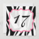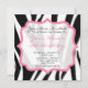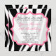 Um convite do aniversário que caracteriza um fundo do impressão da zebra na parte dianteira e na parte traseira. Personalize os numerais na parte traseira com sua idade dentro do quadro cor-de-rosa. Personalize a parte anterior com detalhes de seu evento.