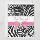 Uma zebra rosa e preta, convite para Bat Mitzvah. Personalize com sua escolha de estilo de fonte, cor de fonte e texto na frente e no verso. Adicione seus detalhes à frente e atrás, simplesmente escolhendo o botão laranja "Personalizar!" para começar a adicionar detalhes do evento, estilo da fonte, tamanho da fonte e cor e texto. Observe que todos os designs de convite que você encontrará no Zazzle são gráficos impressos sem joias reais, arcos, levantados, gravados em relevo ou peças ou peças adicionadas.