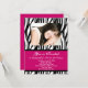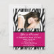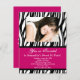 Convites personalizados de fotos, Excelente para 16 anos ou qualquer ano! Personalize este convite para animais na moda com o seu nome, fotografia, idade e informações da festa. Rosa super quente com faixas de zebra preto e branco.