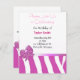 Um design clássico de cor-de-rosa brilhante com um padrão de stripe de zebra. Um arco bonito acentua. Personalize com as informações de sua parte conforme desejado.