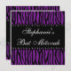 Um convite Bat Mitzvah, com na moda roxo e zebra preta, com ilustrações impressas em diamante. Os convites de festas modernos, legal e fedorentos do Bat Mitzvah são certamente um grande sucesso! Personalize facilmente com os detalhes da sua festa. Designs são ilustrações/gráficos impressos - NÃO EMBELÉCIES REAIS.
