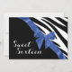 Celebre seu doce aniversário de dezesseis anos com este convite impresso em zzebra, elegante e divertido, acentuado com fita azul e arco de pavão. Design completamente impresso, este convite não tem uma fita ou arco real anexado.