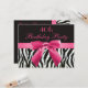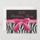 Convites de festas aniversário de 40 anos personalizados elegantes para mulheres com uma bela e elegante zebra branca e preta impressa em forma de falso padrão de listas de peles e um arco e fita rosas quentes e giros. Estes convites elegantes são decorados de ambos os lados. Menina, chic, moda, convites modernos. NOTE: TODOS OS CONVITES NO ZAZZLE TÊM IMAGENS IMPRESSAS PLANAS. O texto, a fonte e a cor da fonte podem ser personalizados. Se precisar de ajuda para personalizar seu produto, entre em contato comigo através da minha loja. Ficarei feliz em ajudar.