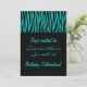 Festa em estilo com convites de teal e zebra preta. Teal para diversão e preto para formal. Perfeito para a Celebração 16 Doce ou altere o texto para atender ao título, nome, endereço, telefone e datas importantes do evento.