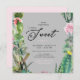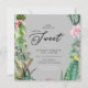 Cactos de Aquarela. Cinza e rosa. Doce Convite de aniversário 16. Zoom. Virtual.