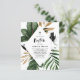 Convide familiares e amigos para o seu evento com este convite personalizável para batismo. Apresenta ilustrações em aquarela de folhas tropicais e plantas com folhas falsas de folha de ouro e acentuados em aquarela de pincel preto. Perfeito para o verão e eventos tropicais. Personalize este convite ao batismo tropical adicionando seus detalhes.