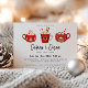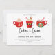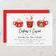 Um belo trio ilustrado de canecas de cacau quente de inverno, convite para festas de férias. Texto modelo do estilo design da tipografia de tendência com suporte a cores vermelho de coordenação sólida.