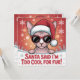 Celebrate Christmas with attitude! This fun design features a stylish Sphynx cat wearing Santa’s hat and cool sunglasses, paired with the playful quote “Santa said I’m too cool for fur!” Perfect for Sphynx lovers and cat enthusiasts who adore humor and holiday cheer. Add a unique twist to your festive season with this trendy, hairless cat Christmas artwork. Ideal for apparel, cards, and home décor.