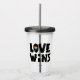 Este design apresenta a frase Amor vence com um coração colorido de arco-íris.