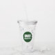 Tumbler moderno e acrílico com palha de tampa e bebendo para o segundo grau ou formando universitário com cores escolares caçam verde e branco, com letras em negrito impressas em branco num círculo verde caçador com borda branca.