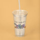 Esta xícara de viagem de Halloween está cheia de beleza e sua bebida favorita. Apresenta ilustrações de animais de pelúcia bonitinhos com alguns dos seus esqueletos mostrando para um aspecto ligeiramente assustador junto com algumas abóboras de escamas cortadas. Há um morcego, um urso, um gato, um cachorro e um coelho. Os animais e abóboras estão em tons de cinza de carvão, roxo, lacrimejo e laranja. A mensagem "Feliz Dia das Bruxas" na frente pode ser personalizada com seu próprio texto, e no verso está um ponto para adicionar um nome ou outro texto personalizado.