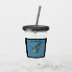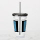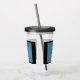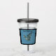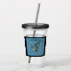 Esta bebida acrílica tropeçando com palha e tampa tem um bastão azul voador assustador com uma face branca sobre fundo azul com uma borda preta.