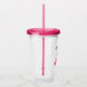 Vidro de plástico do miúdo de coruja rosa-rosa. Xícara personalizada com tampa e palha. Design de desenho de aves bonitas com tipografia na moda para nome de criança. Bebidas divertidas para Festa de aniversário de menina. Faça um para hóspedes também!