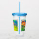 Acrylic Tumbler com pintura animal de Louis Wain (1860-1939). Um gato listrado de laranja anda num campo verde à noite. Flores brancas, roxas e vermelhas estão no primeiro plano. Um presente maravilhoso para amantes de gatos e arte inglesa.