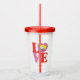 Veja o dentro Chibi Supergirl de um coração de ping que representa o "O" neste logotipo empilhado de "LOVE".