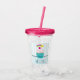 Tumbler acrílico personalizado com um padrão listrado azul claro e branco emparelhado com um padrão de bolinhas azul e rosa. Camadas sobre o topo é um cupcake azul giro com glacé rosa e um rosto sorridente kawaii. Uma cereja em cima também tem um rosto feliz fofo. Uma estrela cadente está voando no ar