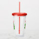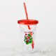 Esta bebida acrílica que cai com palha e tampa tem um esqueleto divertido saindo de uma forma brilhante vermelha e verde vestindo um chapéu de Papai Noel segurando Enfeites de natal até seus olhos. Personalize o texto Feliz Natal com o modelo na frente e atrás.