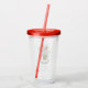 A funny snowman cartoon on an acrylic tumbler. Use "Personalize this template" to change the "It's Christmas!" text and create a unique, customized item. It's maximum Christmas with this excited snowman dressed up as Santa Claus, jumping out of a Christmas present like a jack-in-the-box. The happy snowman is bursting out of a gift box wrapped in gold paisley wrapping paper and a green ribbon with white snowflakes.