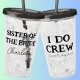 Este copo personalizado de irmã da noiva é ótimo para as celebrações da sua festa de despedida de solteira "I Do Crew" dentro ou fora de casa. Para editar o texto, clique no botão personalizar. Lembre-se de editar ambos os lados.
