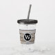 Vocês vão adorar esta letra monográfica acrílica monográfica de madeira rústica, monograma branco, em círculos pretos e cinzas e um fundo de espadilhas de madeira.