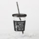 O design de adereços de bebidas acrílicas de texto defendendo a reforma de armas, apresenta uma silhueta de rifle assalto com "Pare de fazer é mais fácil comprar AR-15 do que adotar um cão. Texto branco e gráfico em fundo de cinza