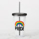 Este design apresenta a palavra orgulho sob um arco-íris colorido.
