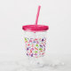 Os miúdos do dinossauro da aguarela personalizaram o Tumbler cor-de-rosa do acrílico do teste padrão das meninas. Adicione o nome na parte dianteira na pia batismal roxa. Edite para mudar a cor ou o estilo da pia batismal. Teste padrão do envoltório dos dinossauros em torno do copo. www.SamAnnDesigns.com