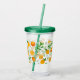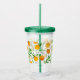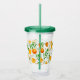 O estilo do Sip com esse tumbler acrílico, com um elegante padrão sem costura de cor d'água de citros laranja, frutas de verão, folhas verdes e vibrações florais botânicas — Adequado para festas de jardim ou dias ensolarados!