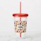Tumbler acrílico com um padrão sazonal de Ação de Graças. Apresentando peregrinos brancos, perus, torta de abóbora e outros diversos elementos temáticos do outono.
