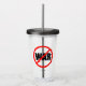 Esta trabalho de arte apresenta a palavra guerra atravessada dentro de um círculo.