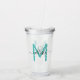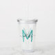 Copo De Acrílico Simples Monograma Verde Verde-Teal Elegante