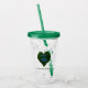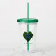 Leitura de texto azul, "TERRA e CORAÇÃO são soletrados com as mesmas letras", sobreposta a uma folha verde em forma de coração. Adicione seu próprio texto adicional.