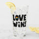 Este design apresenta a frase Amor vence com um coração colorido de arco-íris.