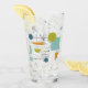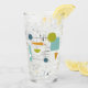This fun mid century modern glass tumbler features colorful flowchart type geometric shapes. This will make a fabulous addition to your table.