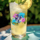 A Betta fish with water and lotus flowers darn in a tattoo style.