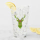 Este design é o contorno de uma cabeça de cervo macho cheia de cores de camuflagem e formas geométricas.