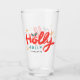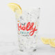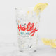 Christmas Holly Jolly Fun Winter Personalized Name Glass apresenta o texto "Holly Jolly em vermelho e azul moderno script de caligrafia tipografia e personalizado com seu nome personalizado. Destacado com flocos de neve e snowflakes. Presentes perfeitos para o Natal e as férias ou para as festas de Natal. Elaborado por ©Evco Holidays www.zazzle.com/store/evcoholidays