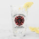 Logotipo do Departamento de Fogo. Vidro de excelente para bombeiros e primeiros respondedores. Personalize com seu nome e estação.