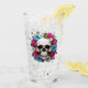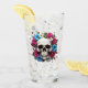 Um crânio humano cercado por flores vermelhas, brancas e azuis faz um maravilhoso e belo vidro bebendo Gótico. Perfeito para o Halloween, e a cada dois dias.