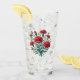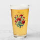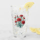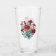 Um copo-bebendo com um buquê de cravos vermelhos.