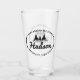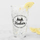 Este simples, mas eficaz design de tumbler de vidro, com uma linha de árvores de abetos que aparece no seu nome em texto de script e seu endereço ou outro texto em um fundo oval. Perfeito para um item de promocional da empresa ou crio um conjunto completo para um belo presente de aquecimento da casa. Procure ID304 para ver outros produtos com este design.