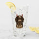 English Springer Spaniel (liver and white) looking devilishly mischievous - complete with devil horns on one side of this glass -