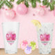 glass tumbler, featuring a delicate arrangement of pink Christmas ornaments,