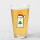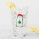 Fantasma bonito segurando uma árvore de Natal e vestindo um chapéu de Papai Noel com flocos de neve no fundo