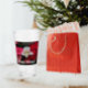 Vidro de bebendo para bebidas frias que mostra uma foto de Poinsettias vermelhas e uma Orquídea de Senhora Branca, também conhecida como Orquídea de Vênus. Um design floral adorável para os feriados!