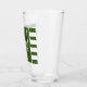 Copo de cerveja verde e branco com tema de futebol americano para festa de despedida de solteiro com listras, gol de campo, capacete e bola. Personalize com o nome do noivo.