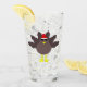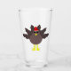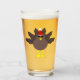 Este vidro espetacular mostra uma engraçada caricatura de um peru de Natal com grandes olhos pretos, um pequeno bico amarelo e penas de cauda enfiadas. Os pés estão voltados em direções opostas, fazer o peru parece desajeitado. O peru está vestindo um chapéu de Papai Noel vermelho e branco e está pronto para o Natal.